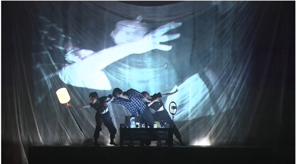 지난 3일 제주아트센터 무대에 오른 '디 오브젝트'. 객석 중간에 놓인 또 하나의 무대에서 연출된 장면으로 사진은 제주아트센터 유튜브 중계 화면에서 따왔다.