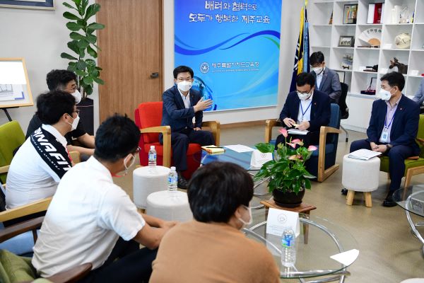 지난 5일 제주도교육청 교육감 접견실에서 마련된 제주시·서귀포시 동지역 과대학교 학부모들과의 간담회. 사진=제주도교육청 제공