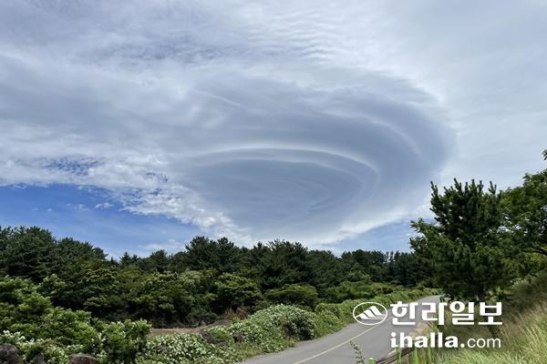 제주지역에 올해 첫 폭염주의보가 발효된 6일 오후 제주시 노형미리내공원 하늘에 렌즈구름이 나타나 시민의 눈길을 사로잡고 있다. 연합뉴스