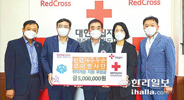 신용협동조합 두손모아봉사단(단장 여혜숙), 신협중앙회(제주본부장 허영진)는 지난 5일 대한적십자사제주특별자치도지사(회장 오홍식)에 취약계층 지원을 위한 성금 500만원을 전달했다.