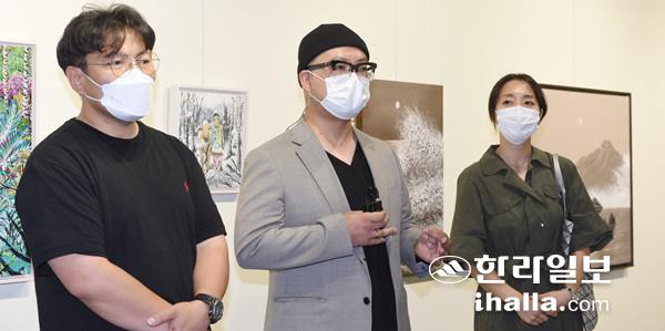사진 오른쪽부터 김강훈, 조기섭, 신승훈 작가. 이상국기자