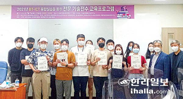 제주대학교 생명공학부 바이오소재전공은 대학 아열대원예산업연구소, 아열대농업생명과학연구소, 지식재산교육센터와 함께 지난 1~2일 '2021년도 BT-ICT 융합실습을 통한 전문 기술전수 교육프로그램(1차)'을 운영했다.