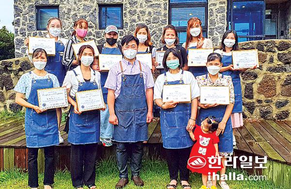 함덕농협(조합장 현승종)은 지난 6일 바리스타학원 실습장에서 결혼이민여성 11명이 참석한 가운데 '결혼이민여성 직업교육(바리스타 2급 자격증)' 과정 수료식을 가졌다.