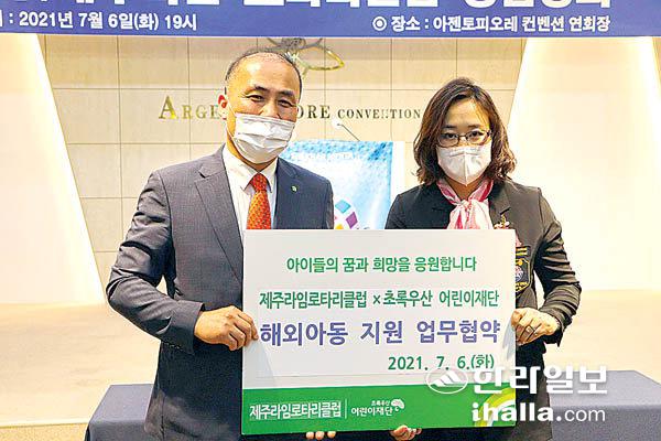제주라임로타리클럽은 창립을 준비하면서 코로나19로 신음하고 있는 세계 빈곤아동들을 위해 해외 아동을 돕기로 결정했다. 제주라임로타리클럽은 초록우산 어린이재단과 해외아동 지원 업무 협약을 체결하고, 해외아동 2명과의 결연을 시작으로 점차 확대해 나갈 예정이다.