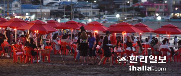저녁에도 북적이는 해수욕장