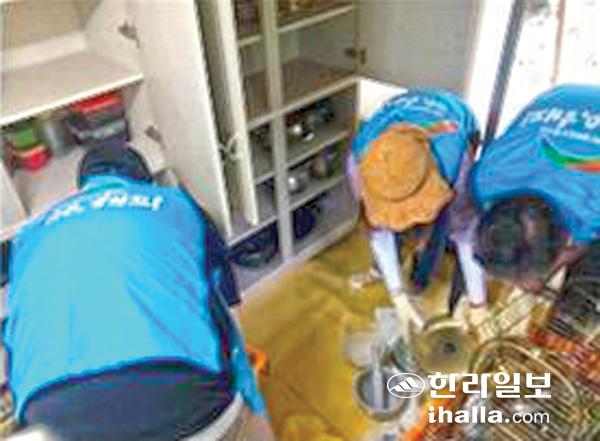 한국농어촌공사 제주지역본부(본부장 서상기) 직원 10명은 12일 ESG경영 실천의 일환으로 제주시 도련동 소재 취약계층가구에서 '농어촌 집 고쳐주기 행복충전활동'을 벌였다. 이날 보일러 설치와 노후가구 교체, 집기류 정비, 집 안팎 청소에 구슬땀을 흘렸다. 앞서 지난달 25일에는 조천읍 소재 취약계층가구를 방문해 외벽·지붕 페인트 도색, 방수작업을 벌이기도 했다.