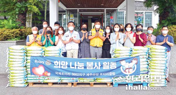 국제로타리3662지구(취임총재 김하석·이임총재 고권진)는 지난 9일 메종글래드 제주에서 총재 이·취임식 행사를 갖고 사랑의 쌀 2500㎏을 제주사회복지공동모금회(회장 김남식)에 기부했다. 이날 기탁된 쌀은 도내 사회복지기관 및 어려운 이웃에 전달될 예정이다.