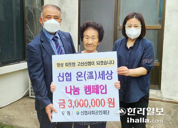고산신협(이사장 이광훈)은 최근 신협사회공헌재단이 주관하는 '온누리에 사랑을 캠페인'을 통해 선정된 취약계층 가구를 찾아 성금 300만원과 생필품을 전달했다. 성금은 생계자금 및 의료비 등에 사용된다.