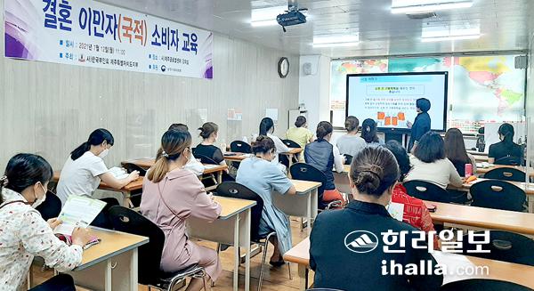 사단법인 한국부인회제주특별자치도지부는 지난 12일 제주글로벌센터에서 공정거래위원회 지원으로 제주도 문화에 익숙하지 않은 결혼이민자를 대상으로 고순생 강사가 금융사기 보이스피싱, 해외직구 등 코로나19로 인한 소비자 피해 사례를 중심으로 강의했다.