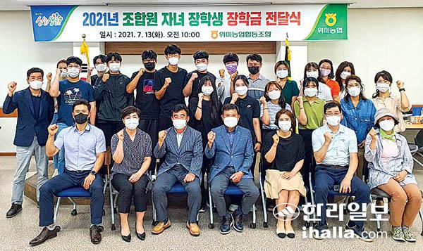 위미농협(조합장 김영근)은 13일 농협 회의실에서 2021년도 조합원 자녀 장학금 수여식을 개최하고, 대학교 신입생 49명에게 각 100만원씩 총 4900만원의 장학금을 전달했다.