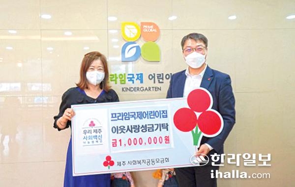 프라임국제어린이집(원장 김영주)은 지난 12일 어린이집에서 이웃사랑 성금 100만원을 제주사회복지공동모금회(회장 김남식)에 기탁했다.