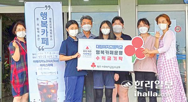 대정여자고등학교(교장 고병석)는 12일 대정여고에서 행복카페 운영 수익금을 지역사회 어려운 이웃을 위해 써달라며 제주사회복지공동모금회(회장 김남식)에 기부했다.