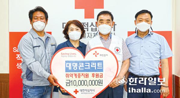 대명콘크리트(옛 동아블럭사) 김형철·고연희 대표는 지난 16일 적십자사 회장실에서 대한적십자사제주특별자치도지사(회장 오홍식)에 취약계층 지원을 위한 후원금 1000만원을 기탁했다.