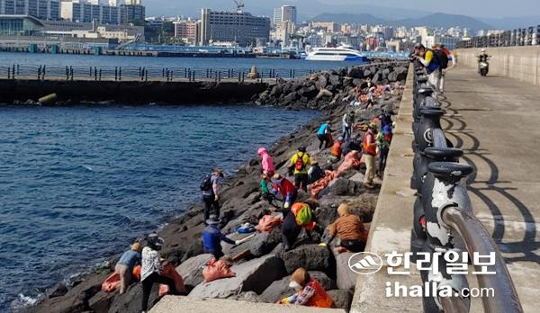 (사)제주도바다환경보전협의회(회장 한광수)는 지난 17일 제주항 제2부두 방파제 해안가에서 해양쓰레기 8t 가량을 수거하며 청정 제주바다를 지키기 위해 구슬땀을 흘렸다.