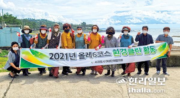 서귀포시여성단체협의회(회장 고맹수) 소속 (사)농가주부모임서귀포시연합회(회장 현효숙)는 19일 회원 10명이 참여한 가운데 올레 6코스인 쇠소깍 주변에서 환경정비 활동을 실시했다.