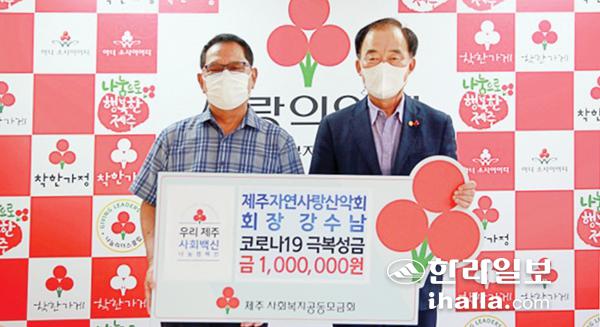 제주자연사랑산악회 강수남 회장은 지난 16일 제주사회복지공동모금회(회장 김남식)를 찾아 코로나19 극복 성금 100만원을 기탁했다. 이번 성금은 강 회장이 코로나19 장기화로 어려운 이웃들을 돕고자 직접 마련했다.
