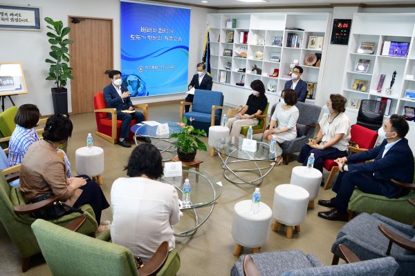 2학기 전면 등교 수업을 앞두고 이석문 제주도교육감과 제주시 동지역 과대 중·고등학교 학부모들과의 간담회가 19일 교육감 접견실에서 열렸다. 사진=제주도교육청 제공
