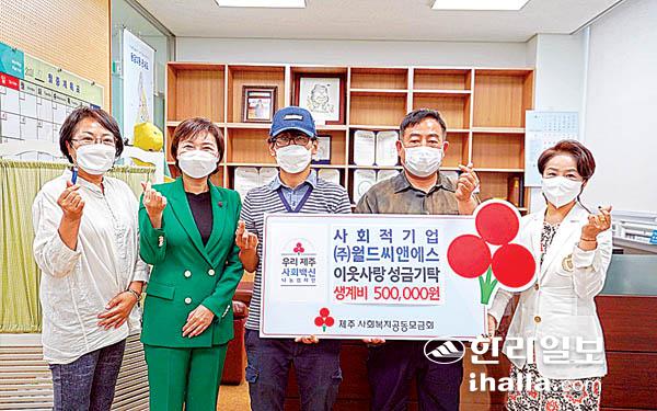 (주)월드씨앤에스(대표 김용광)는 지난 19일 용담1동주민센터에서 한부모가정 생계비 50만원을 제주사회복지공동모금회(회장 김남식)에 기탁했다.