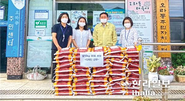 디자인신우(대표 김병수)는 지난 20일 관내 취약계층을 위해 사용해 달라며 쌀 10㎏, 총 50포대를 오라동주민센터에 기탁했다. 오라동은 코로나19로 복지사각지대에 놓인 대상자들에게 전달할 계획이다.