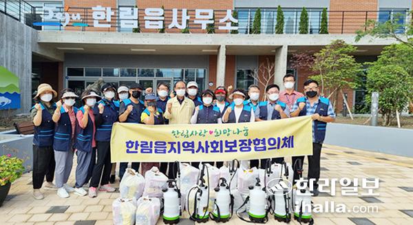제주시 한림읍지역사회보장협의체(공동위원장 김봉선·김성철)는 지난 20일 위원 20여 명이 참여한 가운데 코로나19 감염증에 취약한 저소득층 26가구를 방문해 방역 및 밑반찬을 전달하며 건강모니터링을 실시했다.