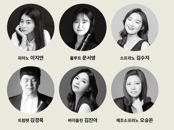그 결과 이달 26일 오후 7시30분 문예회관 대극장에서 열리는 신인음악회에는 오디션을 통과한 6명이 출연한다. 주인공은 이지연(피아노), 문서영(플루트), 김수지(소프라노), 김경묵(트럼펫), 김진아(바이올린), 오승은(메조소프라노)씨다.
