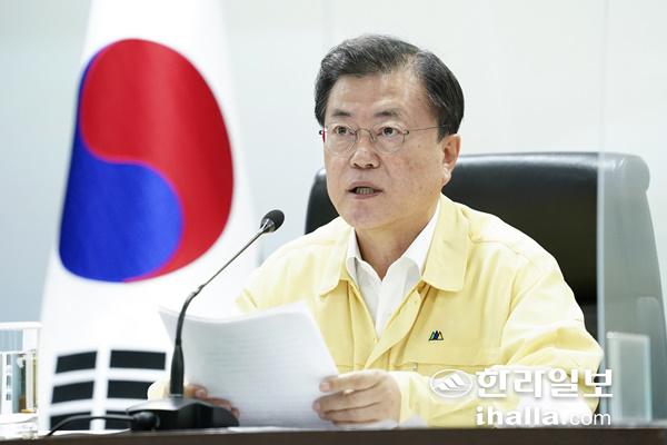 문재인 대통령이 25일 오후 국가위기관리센터에서 열린 코로나19 중앙재난안전대책본부 회의에서 발언하고 있다. 청와대 제공