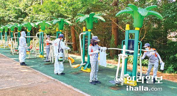 제주소방서 의용소방대연합회(회장 고향심)는 지난 22일 코로나19 감염방지를 위해 다중이용시설 방역활동을 실시했다. 이날 방역은 한마음근린공원 및 이도근린공원에서 이뤄졌으며, 개인위생수칙 준수에 대한 홍보도 진행했다.
