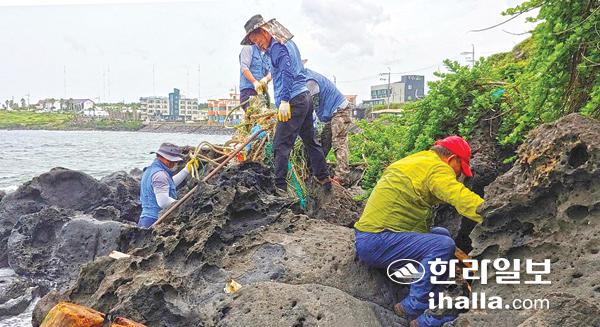 (사)제주도바다환경보전협의회(회장 한광수)는 지난 24일 제주시 애월읍 구엄리 해안가에서 청정한 제주바다 환경을 보전하기 위해 해안가 정화활동을 실시하고 해양쓰레기 3t 가량을 수거했다.