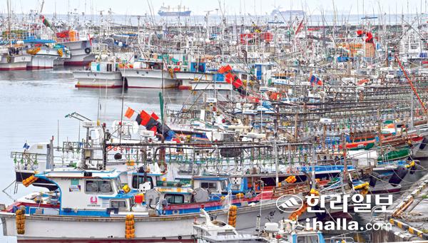 제주 해상에 풍랑주의보가 발효된 25일 제주시 한림항에 많은 어선들이 피항해 있다. 강희만기자