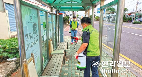 제주시 용담2동과 용문마을청년회(회장 문영환)는 지난 24일 용문마을 내 버스승차대 및 마을안길 등을 중심으로 코로나19 확산 방지를 위한 방역활동을 실시했다.
