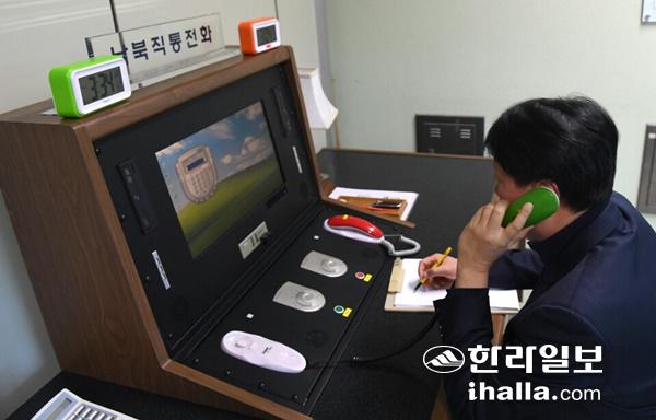 사진은 2018년 1월 3일 판문점 공동경비구역 내 연락사무소에서 우리측 연락관이 북측과 통화를 위해 남북직통 전화를 점검하는 모습. 연합뉴스