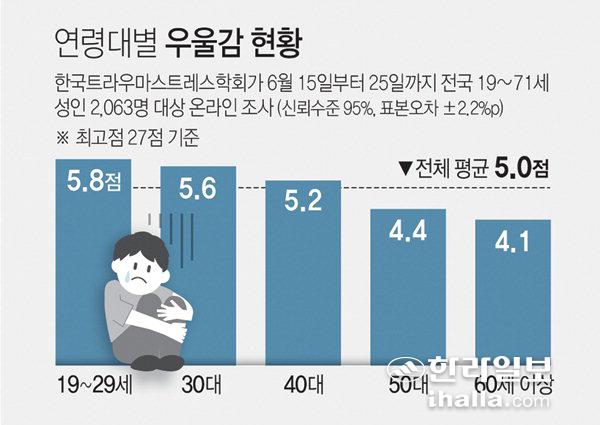2030 남성 4명 중 1명 ‘우울 위험’ 우울 평균 점수 5.0