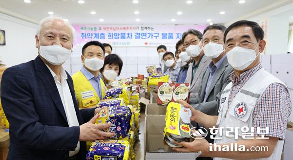 제주시농협(조합장 고봉주)은 지난 26일 대한적십자사제주특별자치도지사(회장 오홍식)에 취약계층 결연가구 지원을 위한 부식품 400세트(1000만원 상당)를 기탁했다.