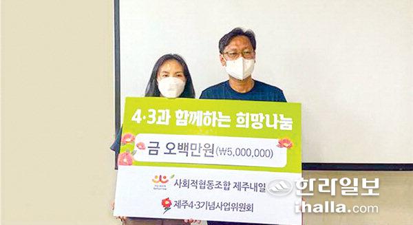 사회적협동조합 제주내일(이사장 좌경희)은 지난 22일 사회공헌사업의 일환으로 제주4·3기념사업위원회에 500만원을 후원했다.