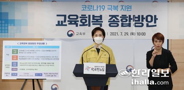 유은혜 사회부총리 겸 교육부 장관이 29일 정부서울청사에서 교육회복 종합방안을 발표하고 있다. 연합뉴스