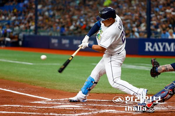 시즌 8호 홈런 날린 탬파베이 최지만. 연합뉴스
