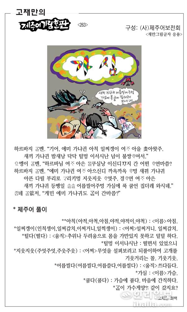 [고재만의 제주어기림혼판] 제주어 풀이(263)