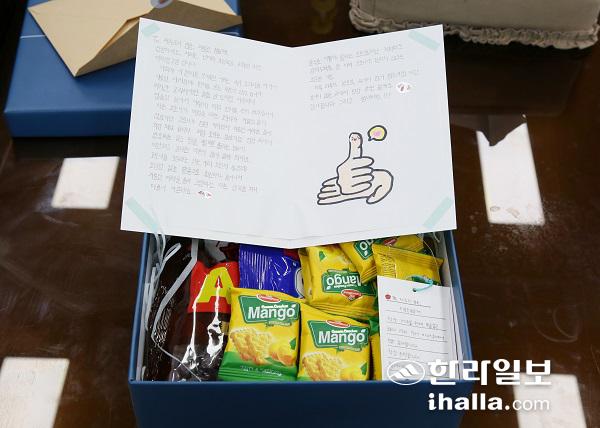제주대학교병원에 전달된 초등학생들의 손 편지. 제주대병원 제공