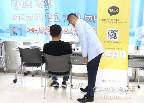 한국건강관리협회제주특별자치도지부(본부장 현재식)는 5일 협회 청사 1층에서 협회를 찾은 고객을 대상으로 건강캠페인을 실시했다.
