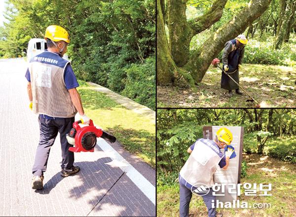 (재)제주문화유산연구원 제주자연문화재돌봄센터(센터장 강영제)는 지난달 28일 '제주특별자치도 향토유형유산 제5호 해안동 왕벚나무'에서 주변 도로의 풀베기, 안내판 닦기 등 문화재 돌봄 활동을 실시했다. 해안동 왕벚나무는 개체수가 극히 한정돼 있고 수목 노령화로 무성번식이 거의 이뤄지지 않아 희귀성을 지닌다.