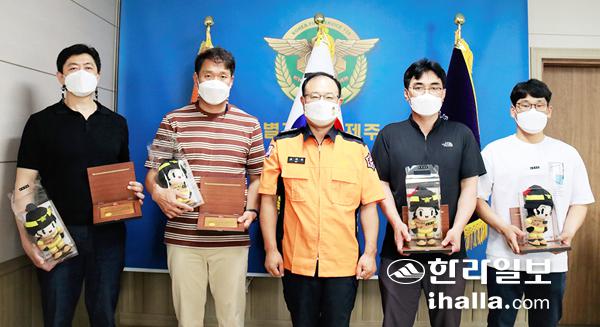 제주소방서(서장 고재우)는 5일 소방서 소회의실에서 심정지, 급성 뇌졸중 환자를 신속한 응급처치로 소생시킨 일반인 4명, 소방공무원 19명에 대한 하트·브레인 세이버 수여식을 가졌다.