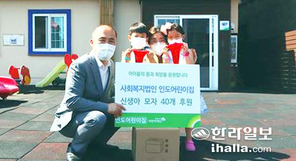 이번 후원물품은 인도어린이집에서 원아보다 더 어린 아동들을 지원하기 위해 구입한 것으로, 기부 활동을 통해 아동들에게 나눔 인성교육도 함께 진행됐다. 모자는 도내 영아원 및 미혼모시설에 지원될 예정이다.