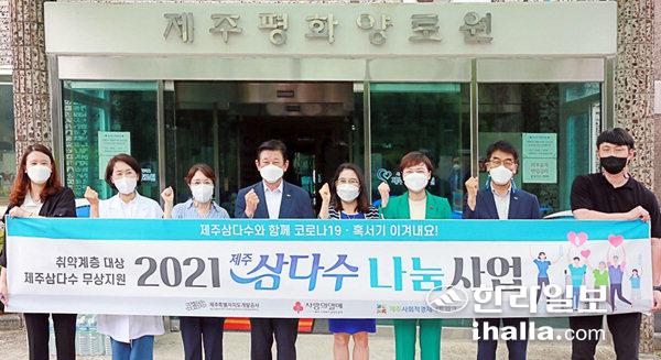 제주특별자치도개발공사(사장 김정학)는 지난 3일 제주평화양로원에서 '2021년 삼다수 나눔사업' 전달식을 진행했다.