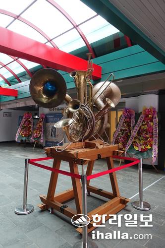 '제주 관악의 은인'을 떠나보내던 그때 그날의 연주곡이 전시장 안을 채우고 있었다. 지난 7일부터 문예회관 2전시실에서 제주국제관악제 연계 행사로 펼쳐지고 있는 '관악! 여명을 밝히다-고봉식·길버트'전이다.