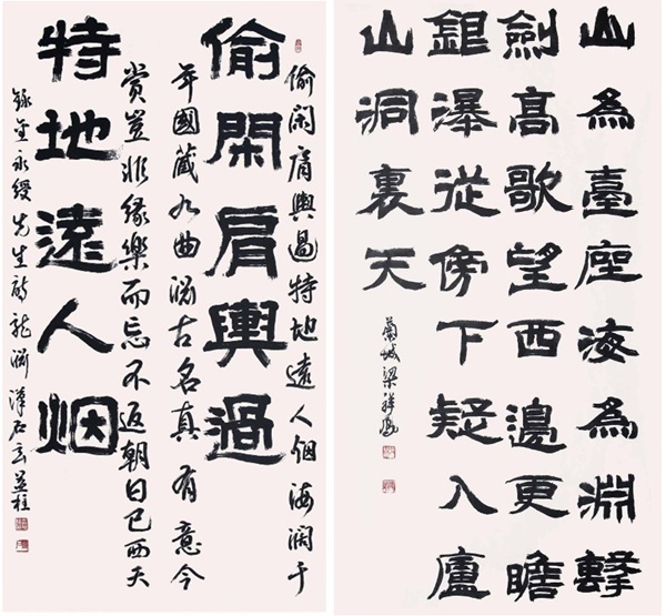김영수의 용연 마애명을 쓴 현익주 서예가의 출품작(왼쪽)과 김정이 정방폭포에 남긴 마애명을 쓴 양상봉 서예가의 출품작(오른쪽).