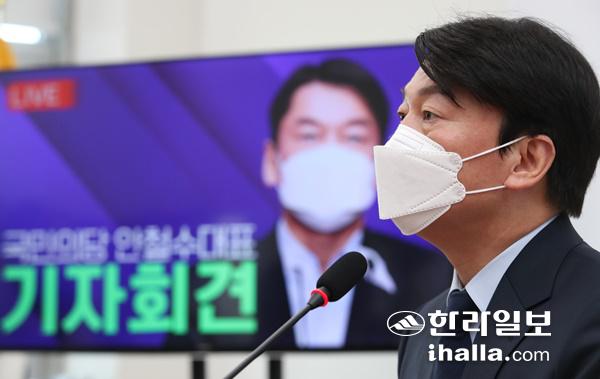 국민의당 안철수 대표가 16일 오전 국회에서 열린 국민의힘과의 합당 관련 기자회견에서 "국민의당과 국민의힘, 두 정당의 통합을 위한 노력이 여기서 멈추게 됐음을 매우 안타까운 마음으로 말씀드린다"고 밝히며 '합당 결렬'을 선언하고 있다. 연합뉴스
