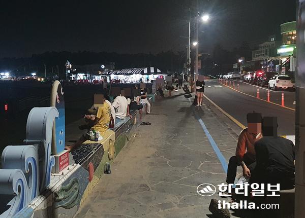제주지역 사회적 거리두기 4단계가 18일 0시를 기해 발효됐지만 해수욕장 등 곳곳에서 여전히 노상술판이 이어지고 있어 방역 구멍의 우려가 제기되고 있다.
