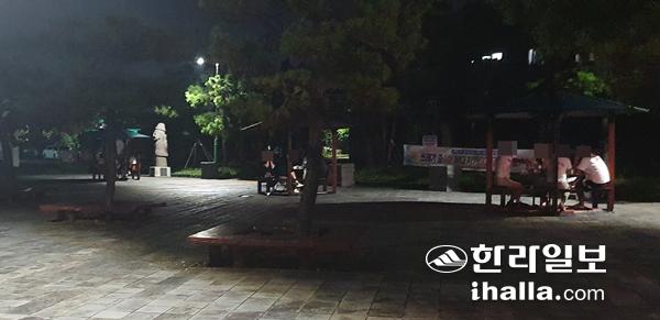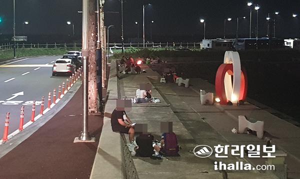 18일 제주시 용담레포츠공원에 자리를 잡은 노상객들.