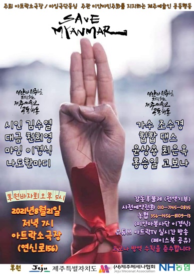 지난 3월 첫발을 뗀 '미얀마 민주화를 지지하는 제주예술인 공동행동'. 매달 공연 형식으로 미얀마 민주화 시위에 참가하고 있는 이들에게 뜨거운 지지를 보내온 이들이 이달 21일 오후 7시 아트락 소극장(제주시 연신로156)에서 올해 마지막 무대를 갖는다.