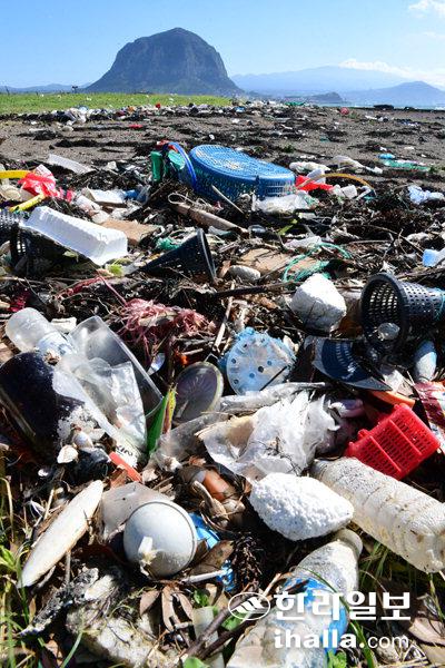 서귀포시 안덕면 사계리 해안가에 버려진 각종 쓰레기들. 한라일보DB